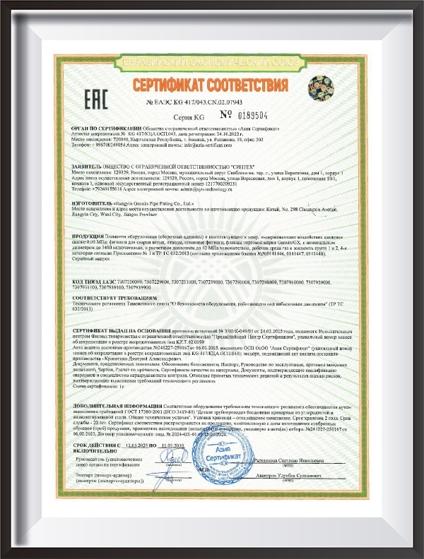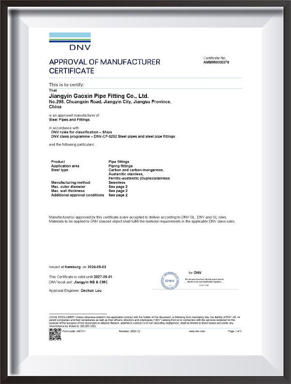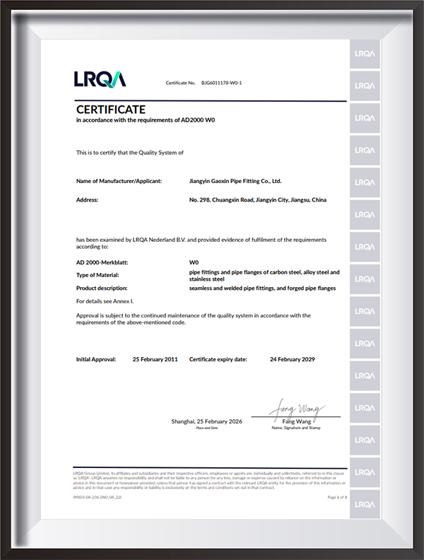 | Testimonium | PED, AD2000, EAC, ABS, BV, DNV, NORSOK M650, ISO9001, ISO14001, ISO45001, etc. |