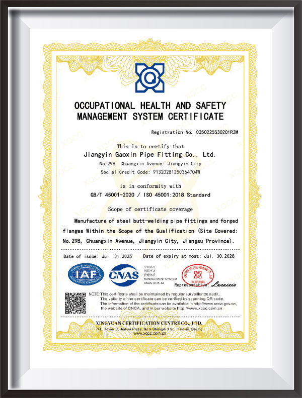 Obsequuntur signis internationalibus et industriae ut ASME B16.9, GB/T12459, EN10253, JIS B2311, DIN2615, ANSI, GOST, etc., ac productionem nativus support.